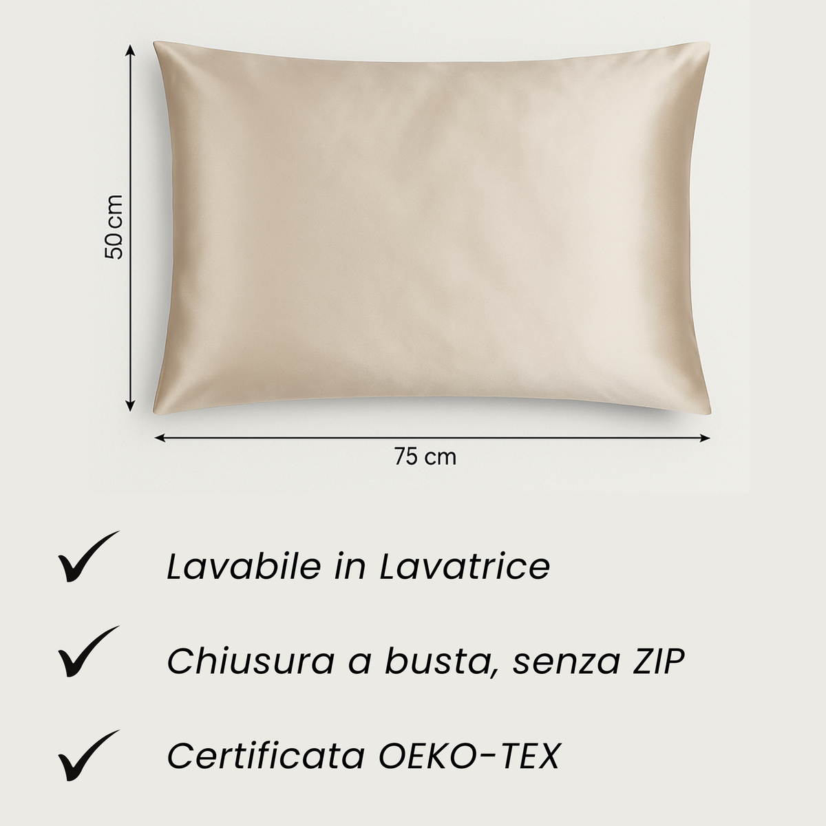 Adatta a cuscini 50x75 cm e 50x80 cm.