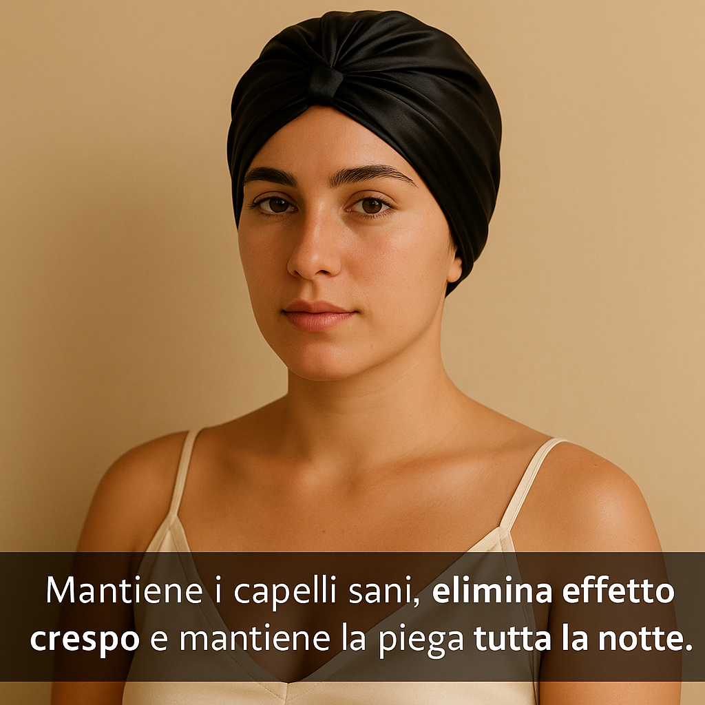 ✅ Ideale per tutti i tipi di capelli, il turbante di seta è particolarmente indicato per i capelli ricci e per contrastare l'incubo mattutino di tutte le donne: capelli crespi e arruffati.