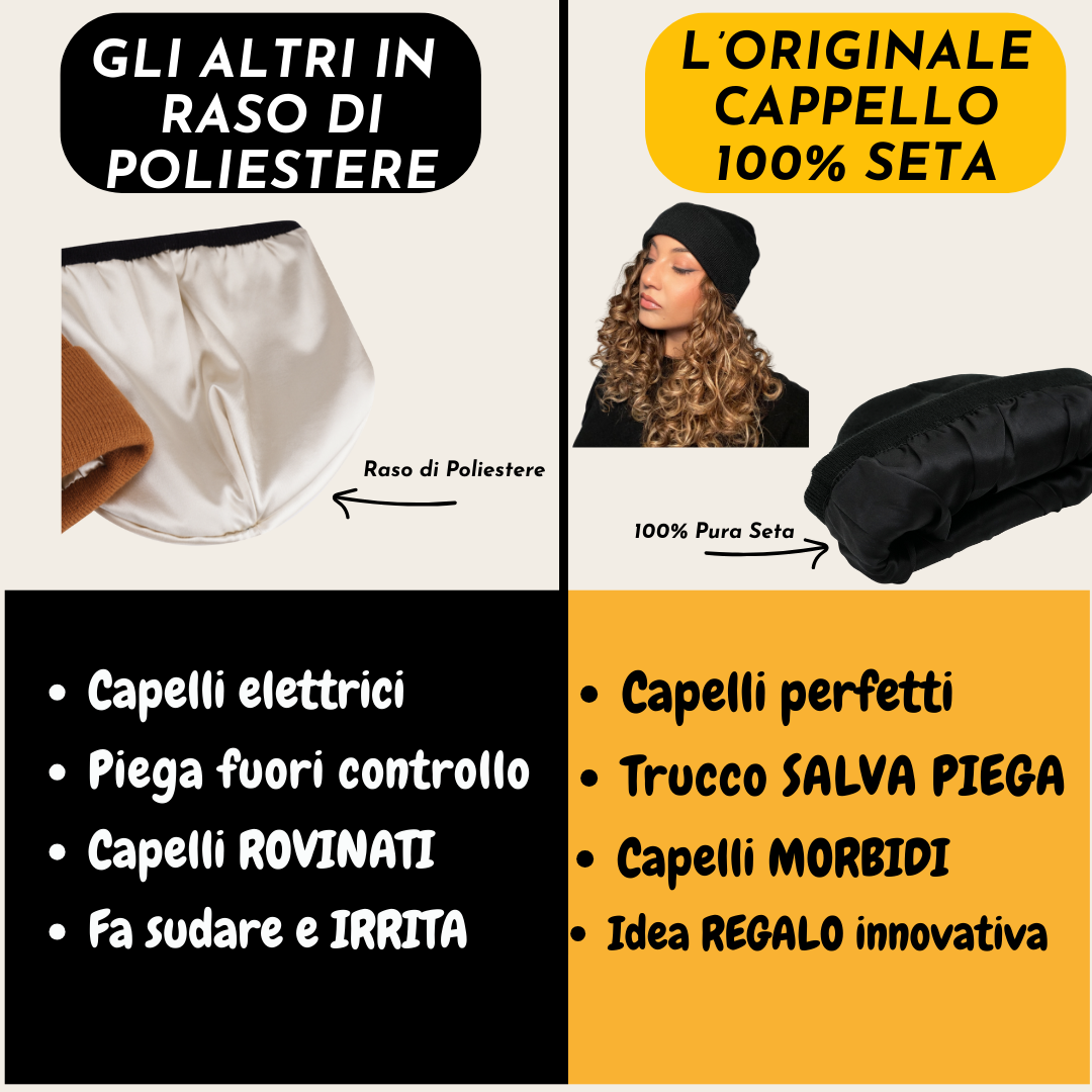 Perché all’interno è in 100% seta. Protegge i capelli dal crespo, dall’elettricità e dallo sfregamento.